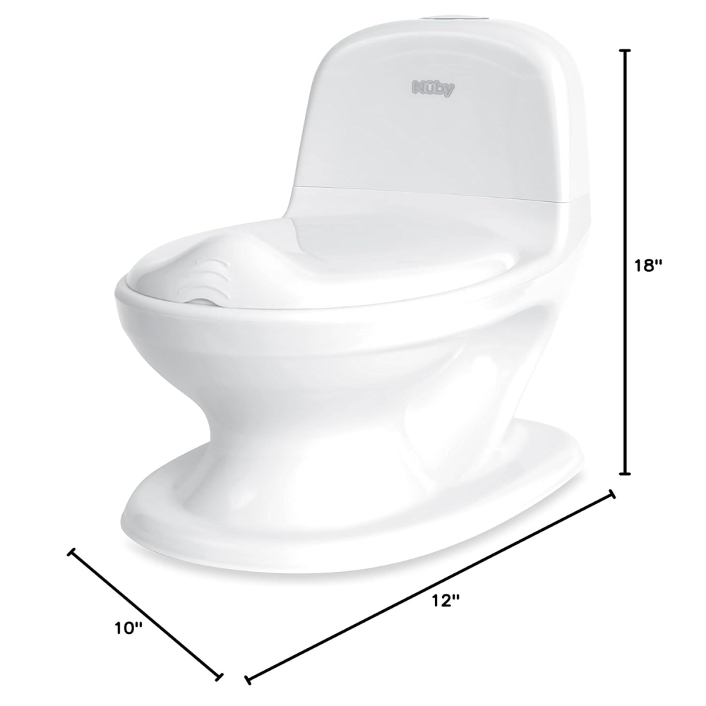 The Nuby My Real Potty offers an authentic and encouraging potty-training experience for toddlers aged 18 months and older, supporting children up to 27 kg. Designed to resemble a standard toilet, it boosts confidence and familiarity with real bathroom routines. A built-in flush handle complete with realistic flushing sounds adds a fun, interactive element that motivates and rewards progress. The compact back handle makes it easy to move and store, while the non-slip base ensures stability during use. Clean-up is hassle-free thanks to the removable inner bowl and splash guard, and the ergonomic seat with wide backrest supports comfortable, correct posture. Constructed from durable, easy-to-clean plastic and featuring neutral styling, the My Real Potty not only blends seamlessly with any bathroom decor but also delivers practicality and encouragement to make potty training a positive milestone.